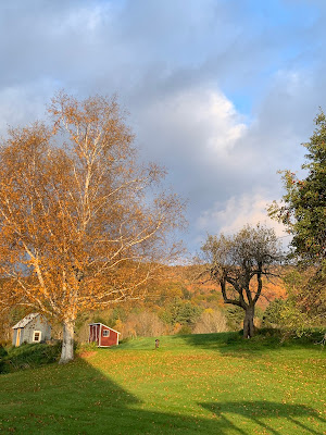 Every tree in our yard is alive with birds flitting about; chirping; enjoying the day--just like in May! Even though the fall colors are a bit smudgy this year, it still counts as another beautiful morning.